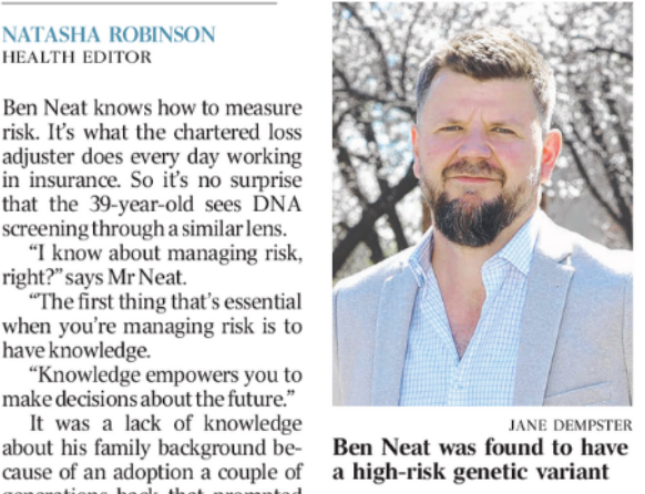 Natasha Robinson (The Australian), featuring DNA Screen study participant Ben Neat