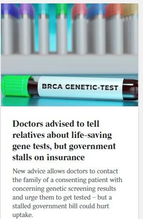 Doctors advised to tell relatives about life-saving gene tests, but government stalls on insurance